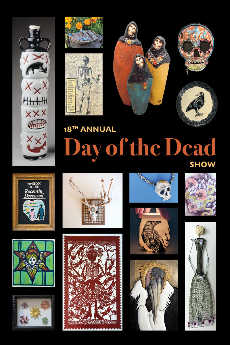 For 18 years, Guardino Gallery has hosted an annual group exhibition honoring the traditions of Día de los Muertos (Day of the Dead). This beloved show brings together local artists who create work inspired by remembrance, transformation, and the vibrant visual language of the holiday.