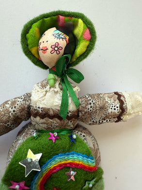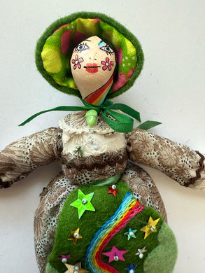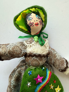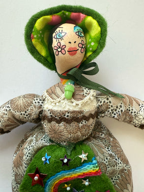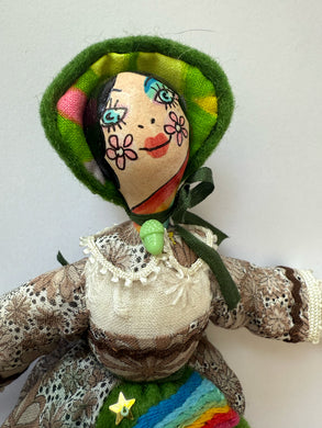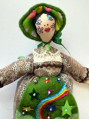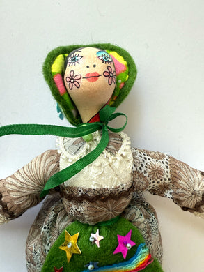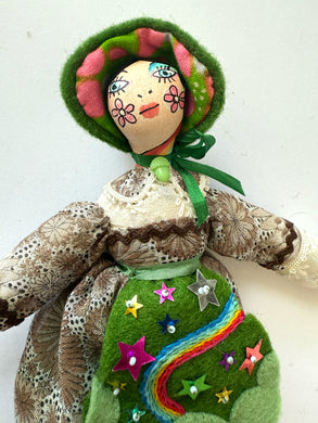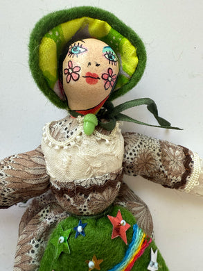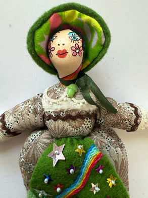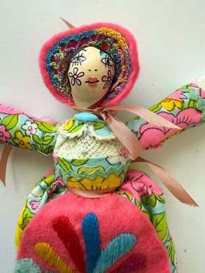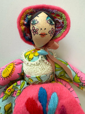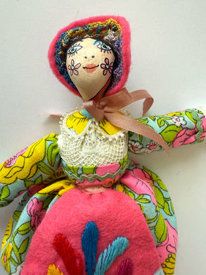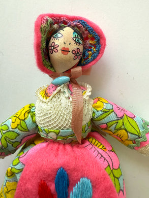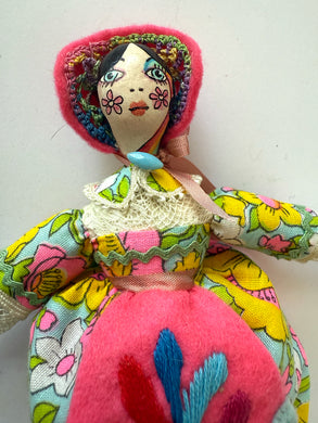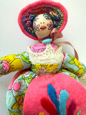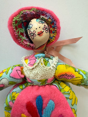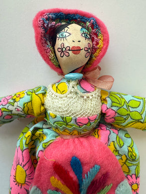 15. Doll with Embroidered Red Skirt and Brown Polka dot Blouse