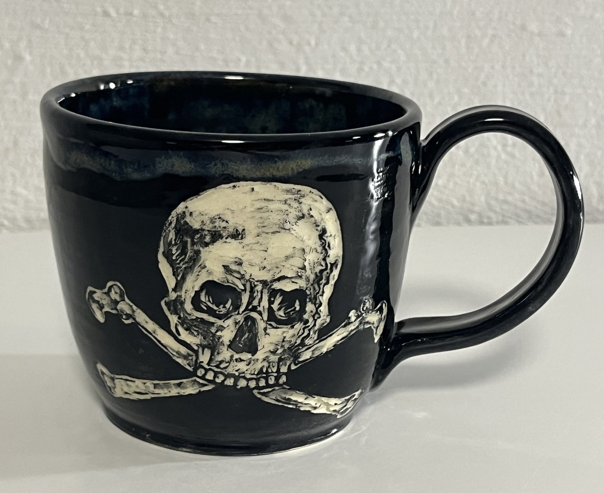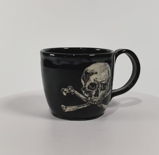 Cone 6 white stoneware with black underglaze and clear and black Cone 6 glaze 4” w x 3 ½ ”