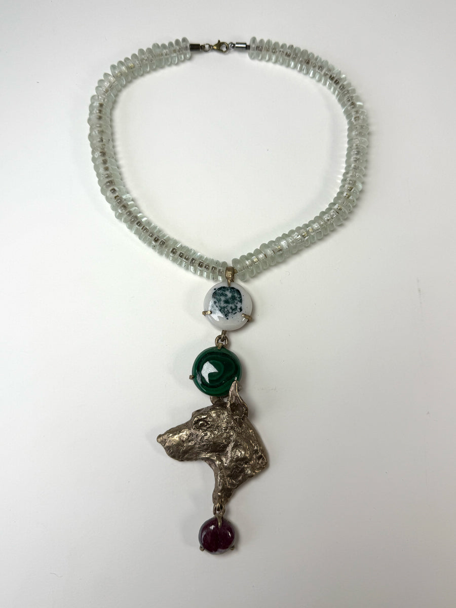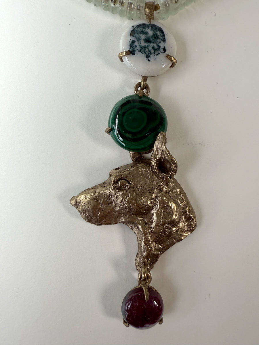 Bronze, African Glass Beads, Solar Quartz, Malachite, Ruby