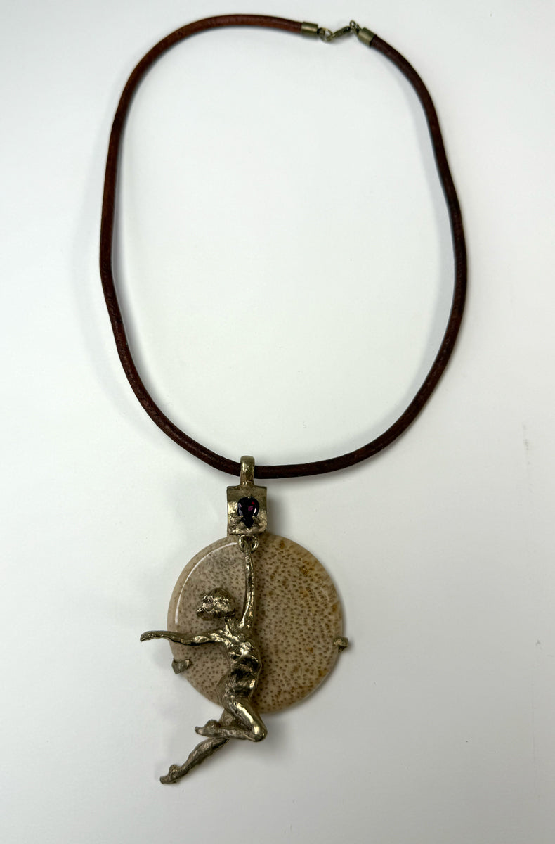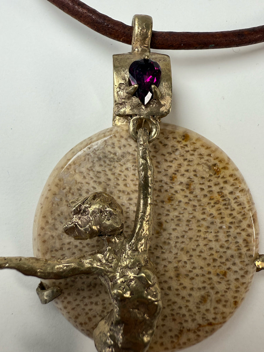Bronze, Leather Cord, Garnet, Petrified Palm Wood